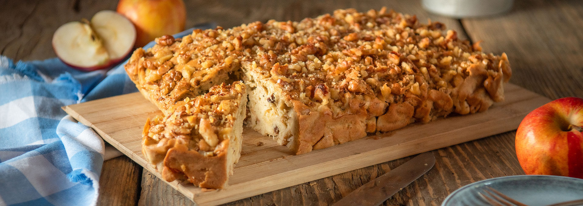 Schneller Apfelblechkuchen mit Baumnusstopping