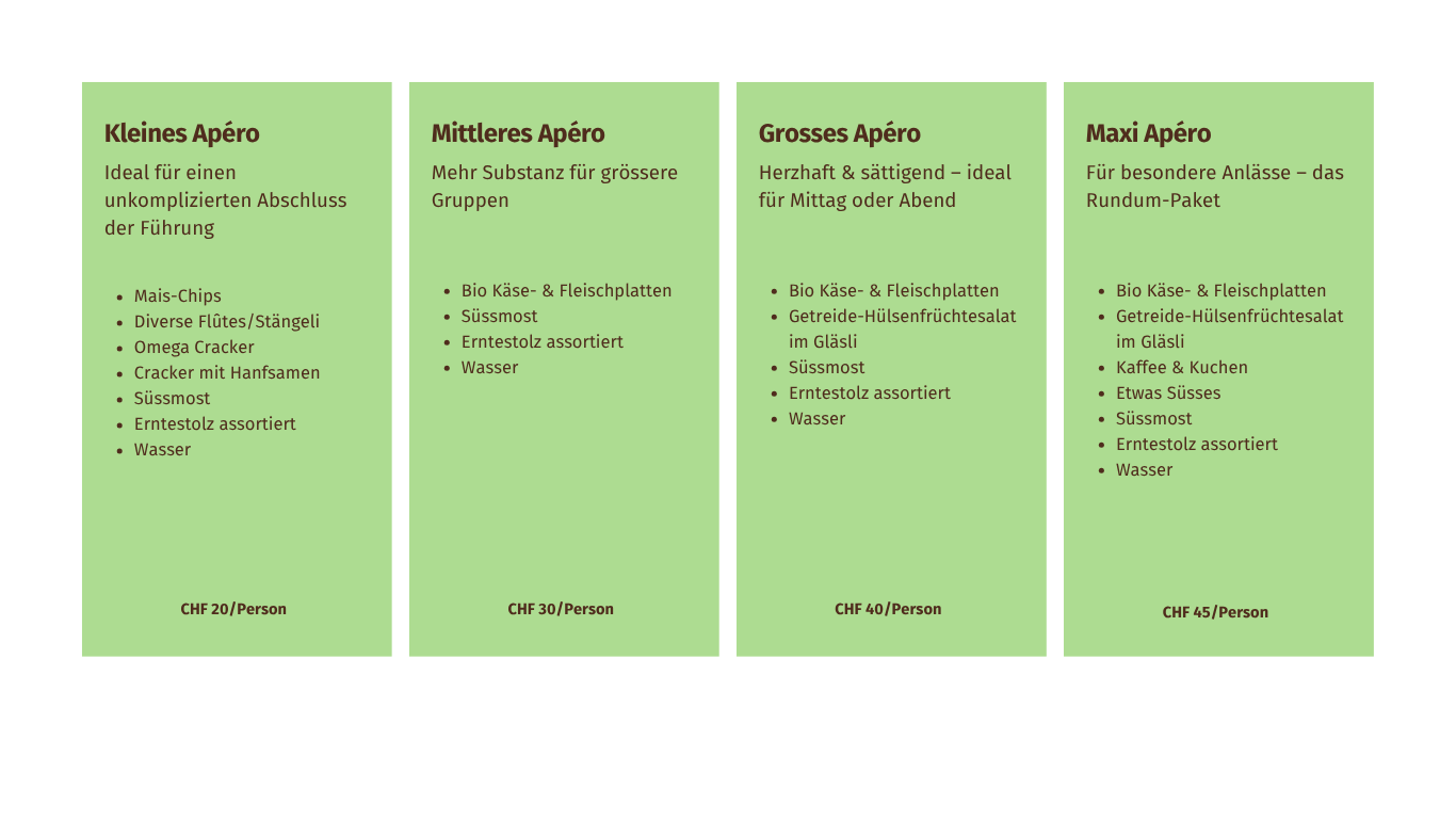 Runden Sie Ihre Besichtigung mit einem feinen Apéro ab.
