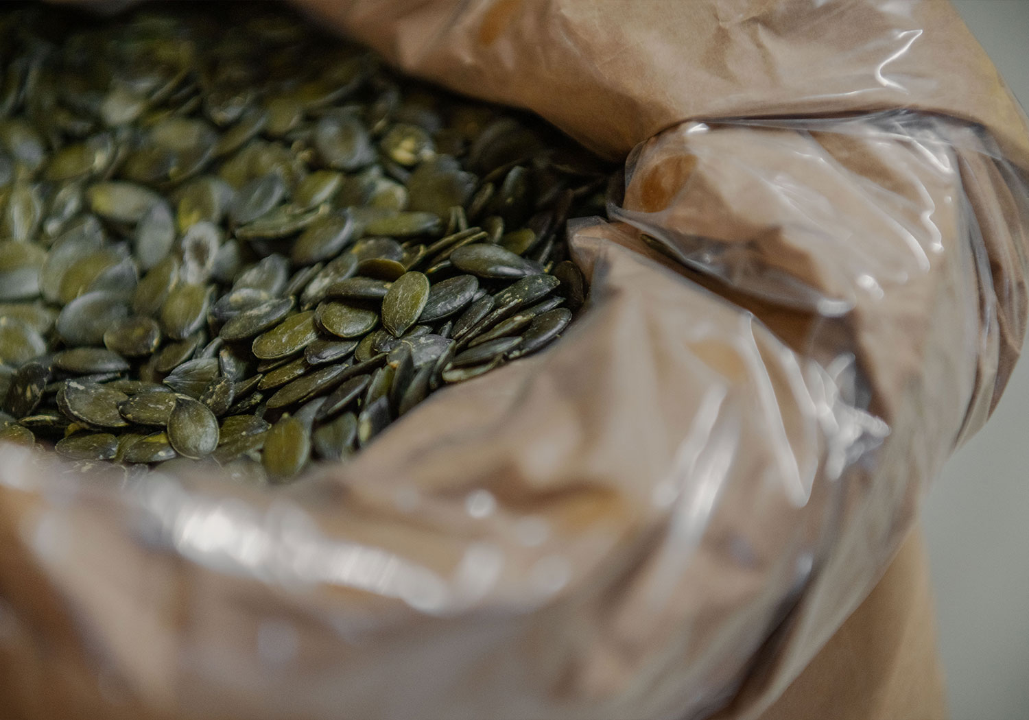 Ölkürbisse sind wegen ihrer Kerne sehr geschätzt. Diese enthalten wertvolle Inhaltstoffe wie Selen, Vitamin A und E oder auch Linolsäure. Sie ergeben ein besonderes Öl, das gute, mehrfach ungesättigte Fettsäuren zu bieten hat. Fünf bis zehn Kilo bringen ausgereifte Ölkürbisse auf die Waage. 30 davon braucht es für einen Liter Öl. Familie Brütsch presst Kürbiskernöl für uns nach bewährter Handwerkstradition in Bio-Knospe-Qualität. Bereits in zweiter Generation hat sie sich schweizweit rund um den Ölkürbisanbau und die Kürbiskernölproduktion einen Namen gemacht.