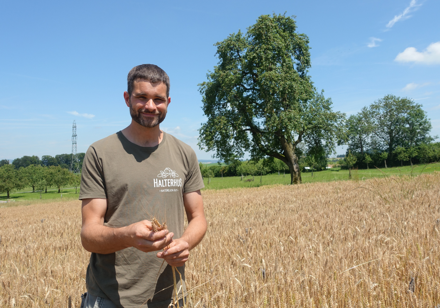 Während seiner Tätigkeit auf dem Neuhof im Aargau kam Adrian Rubi erstmals mit Biofarm in Kontakt und nahm an Flurgängen der Genossenschaft teil. Neben Hirse, Hafer und Auskernbohnen produziert er Weizen für sie. Gerade der Weizen sei für ihn besonders zufriedenstellend, ertragreich und fair bezahlt. «Die Arbeit von Biofarm ist für die Landwirte sehr wertvoll», lobt er und ergänzt, dass er sich von den Grossverteilern mehr Bereitschaft wünsche, auf Schweizer Bio zu setzen.